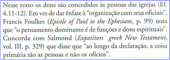 Ele enfatiza que o objetivo de Efésios 4:11-12 são as pessoas e não os ofícios.