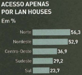 Algumas pessoas acessam através de LAN houses. A Associação Brasileira de Centros de Inclusão Digital estima que há 108.000 LAN houses no país. Ocorre que a maioria das LANs vive na informalidade. Apenas 15.000 tem cadastro como empresas.