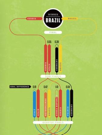 O Brasil, de acordo com o JP Morgan, deve ser eliminado nas quartas de final, pela Holanda. Confronto bastante provável de ocorrer, aliás.
