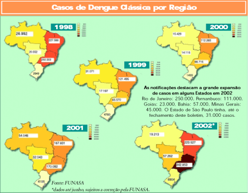 De 1998 a 2002 (anos de eleições), os mapas da incidência da dengue eram: