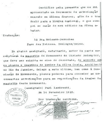 A procuração assinada por Landowski em 1925 (acima) deu lugar à decepção (abaixo):