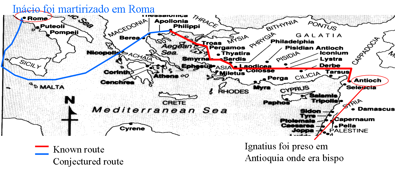 Oskar Skarsaune, no livro À sombra do Templo, reconhece que o terceiro dos mais antigos pais apostólicos, Inácio, é o mais enigmático de todos. Ele foi bispo de Antioquia, na Síria, foi preso e enviado a Roma; no caminho, visitou algumas comunidades cristãs na província da Ásia, tendo dialogado com emissários de outros cristãos. Suas sete cartas, escritas durante a viagem rumo ao martírio em Roma por volta de 110 d.C., são peculiares do ponto de vista lingüístico, originais do ponto de vista teológico, e sua interpretação é alvo de acaloradas disputas entre os estudiosos.