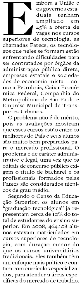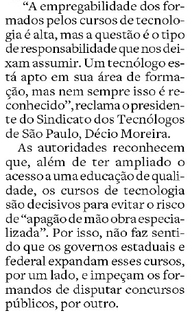 Trabalho e Alegria Falta espaço para os tecnólogos nos concursos públicos! Data: 06/12/2010Autor: jairwpr 0 Comentários Compartilhe isso: Clique para compartilhar no Facebook(abre em nova janela) Facebook Clique para compartilhar no X(abre em nova janela) 18+ Curtir Carregando...