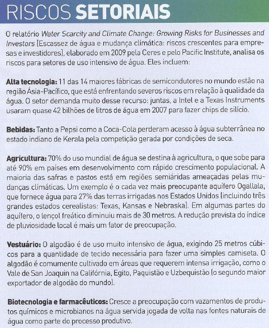 A Turquia se desentende com seus vizinhos porque gasta muita água subterrânea em irrigação e utilizaçao de resorts turísticos pois o lençol é o mesmo dos vizinhos. Barcelona compra água de Chipre no verão, porque suas fontes não conseguem responder ao movimento turístico. A Austrália, acometida por fortes secas, está comprando bilhões de litros de água. Suspeita-se que água do Rio Amazonas já esteja sendo vendida.