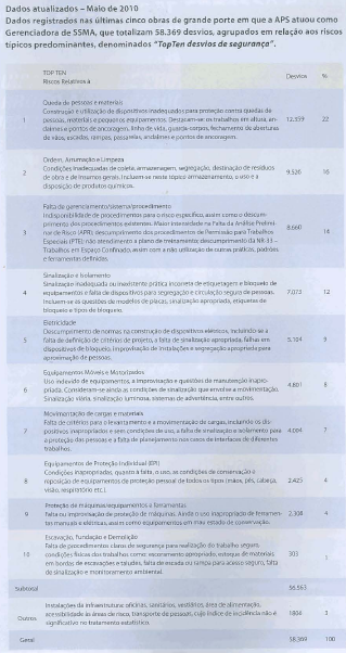 As estatísticas do Ministério da Previdência e Assistência Social mostram que em 2004 foram registrados 28.875; em 2005, 29.228; em 2006, 29.054; em 2007, 37.394 e; em 2008, as últimas publicadas, 49.191. Esses números disparam um alerta, pois evidenciam o não cumprimento da NR- 18 e a exposição dos trabalhadores aos inúmeros riscos inerentes aos canteiros, sem falar na sobrecarga horária em função dos prazos reduzidos para a entrega das obras.