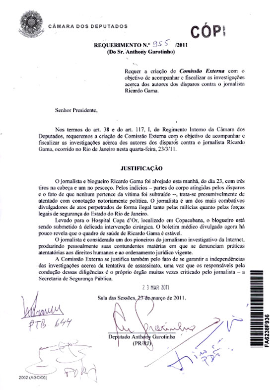 Sempre disse que o Rio de Janeiro estava numa situação melhor que países como México, Colômbia ou Rússia, onde jornalistas não podem exercer sua constitucional liberdade de expressão sob o risco de ter sua vida ameaçada. Imaginava que o Rio estava relativamente livre disso.
