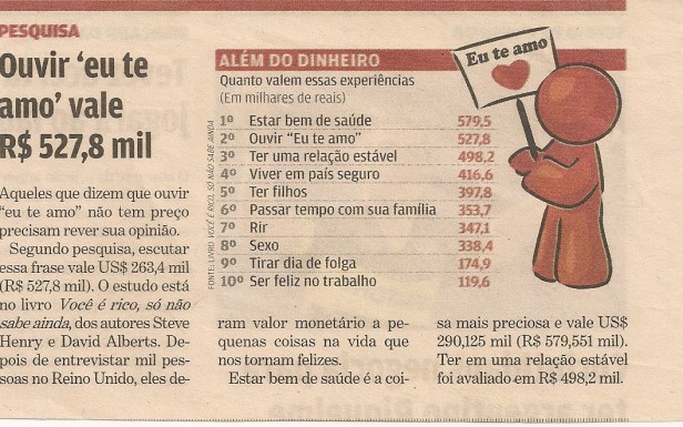 Dinheiro e coração É possivel valorar o amor? Data: 18/06/2011Autor: jairwpr 0 Comentários Compartilhe isso: Clique para compartilhar no Facebook(abre em nova janela) Facebook Clique para compartilhar no X(abre em nova janela) 18+ Curtir Carregando...