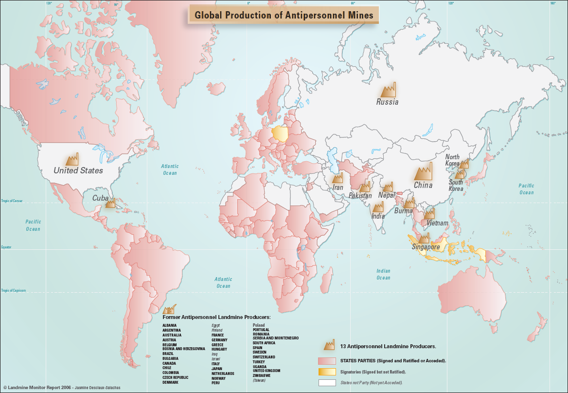 Recentemente, em Moçambique, a HALO declarou 6 distritos do norte como seguros e limpos de minas terrestres. Falta limpar a regisão sul do país. Os países signatários da Convenção de extinção de fabricação e uso de minas terrestres são: