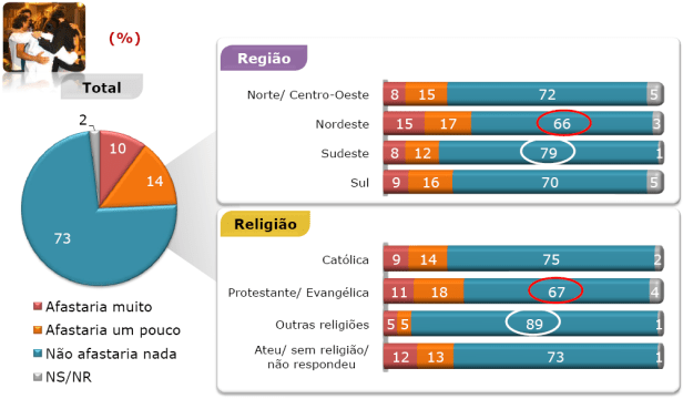 Para a pergunta: Caso seu melhor amigo ou sua melhor amiga revelasse ser homossexual, o quanto isso o afastaria de você: muito, um pouco, ou nada?