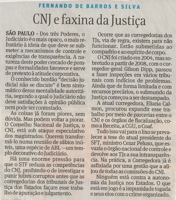 Cidade e igreja TCU, CNJ e a faxina na Justiça Data: 28/09/2011Autor: jairwpr 0 Comentários Compartilhe isso: Clique para compartilhar no Facebook(abre em nova janela) Facebook Clique para compartilhar no X(abre em nova janela) 18+ Curtir Carregando...