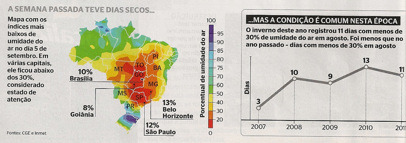 Embora não seja especialista no assunto, tenho a impressão que o Hemisfério Norte está aquecendo e o Hemisfério Sul está esfriando. Quanto mais frio, mais períodos secos e com precipitações rápidas e intensas nas trocas das Estações. Isso parece estar ocorrendo no Brasil como se vê no gráfico acima.