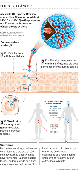 Nos homens e nas mulheres, o HPV pode causar câncer, embora, nas mulheres, a evolução para displasias – quadro prévio ao tumor – seja mais comum (leia nesta página). O contágio ocorre principalmente por via sexual, mas, ao contrário do HIV, o uso de preservativo não é tão eficaz.