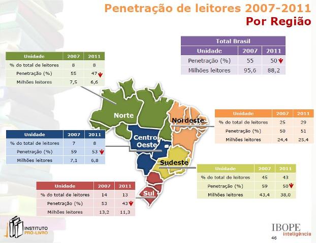 O levantamento, realizado entre junho e julho de 2011, foi divulgado ontem, em Brasília, pelo Instituto Pró-Livro (IPL). O estudo foi feito com o apoio da Associação Brasileira de Editores de Livros Escolares (Abrelivros), da Câmara Brasileira do Livro (CBL) e do Sindicato Nacional dos Editores de Livros (SNEL).