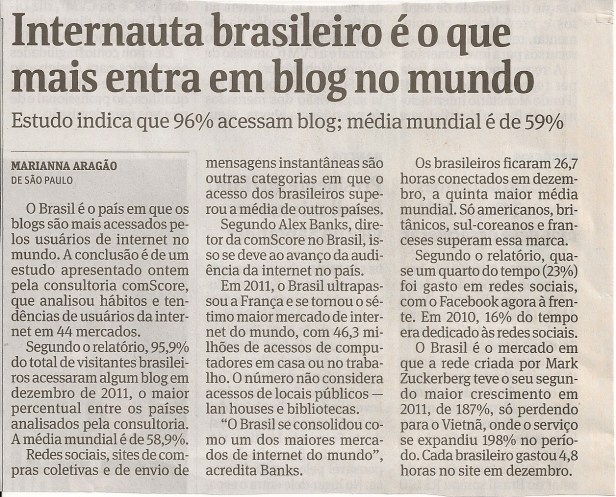 Trabalho e Alegria Brasileiros confiam nos Blogs Data: 15/04/2012Autor: jairwpr 0 Comentários Compartilhe isso: Clique para compartilhar no Facebook(abre em nova janela) Facebook Clique para compartilhar no X(abre em nova janela) 18+ Curtir Carregando...