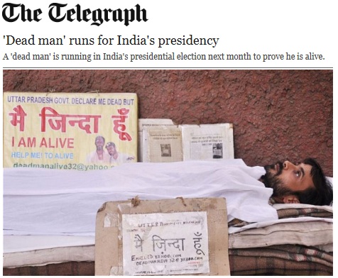 Can a “dead person” run for president of his land of birth? In India, a cook already considered dead 9 years ago is running for president in the polls next month.