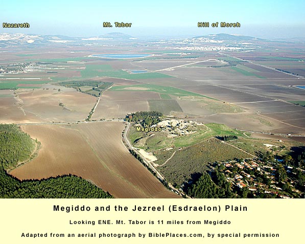 O monte Tabor se eleva quase 600 metros diante do vale do Megido. Muitos estudiosos acreditam que ali o Senhor Jesus transfigurou-se diante de Pedro e João. Na visão, Moisés e Elias conversavam com ele para admiração dos discípulos. Como se aproximava a Festa dos Tabernáculos, Pedro ofereceu montar tendas para eles. Profeticamente, Jesus indicou o lugar de Sua descida gloriosa e magnífica onde irá derrotar o Anticristo, e seus seguidores, junto com Seus exércitos de homens e anjos. Um evento de grande registro, poderes envolvidos e Juízo de Deus.