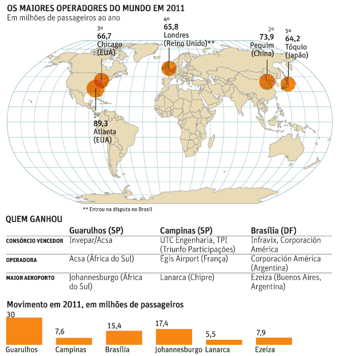 Para garantir que as grandes administradoras de aeroportos entrem no mercado brasileiro, o novo modelo de edital deverá permitir a participação apenas de grandes construtoras – e não de consórcios. Quando o leilão for concluído, o Planalto selecionará quais operadoras estrangeiras as construtoras que vencerem poderão escolher para levar adiante a operação.