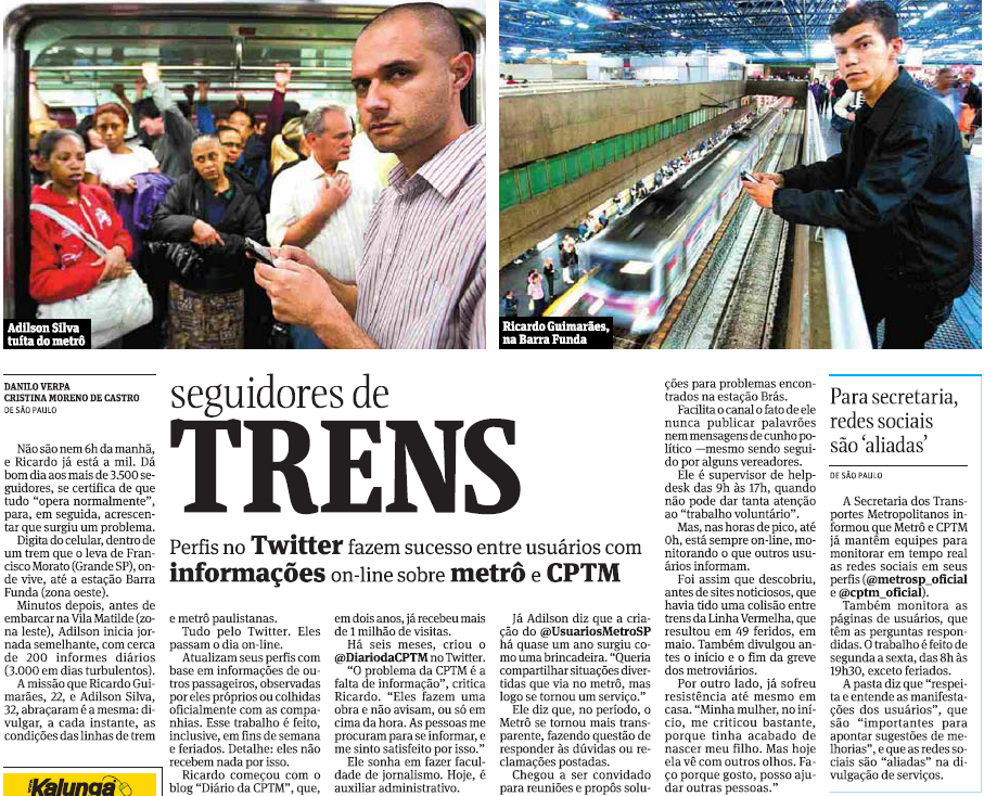 As possibilidades de atuações das Redes Sociais são muitas. Estes exemplos da cidade de São Paulo poderiam ser aplicados na avaliação online de transportes e outros serviços públicos em outras cidades do Brasil.