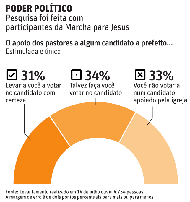 Prezado Jair, para mim a resposta é NRA. Eu não seria influenciada por um líder evangélico em relação a quem eu deveria votar, para mim o voto é pessoal. Mas gosto muito de ler as informações que o PARACLETO nos proporciona. Não concordei com o gráfico mas foi interessante. Abraços.