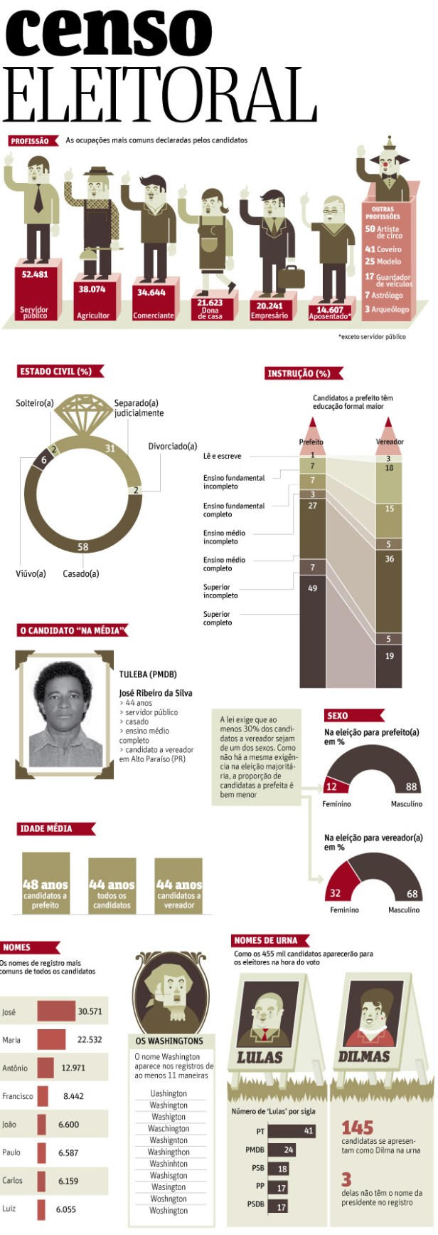 Uma parte considerável de mão-de-obra concursada e contratados ficam disponíveis para atuar nas campanhas eleitorais. No Perfil dos candidatos, encontramos muitos servidores públicos.