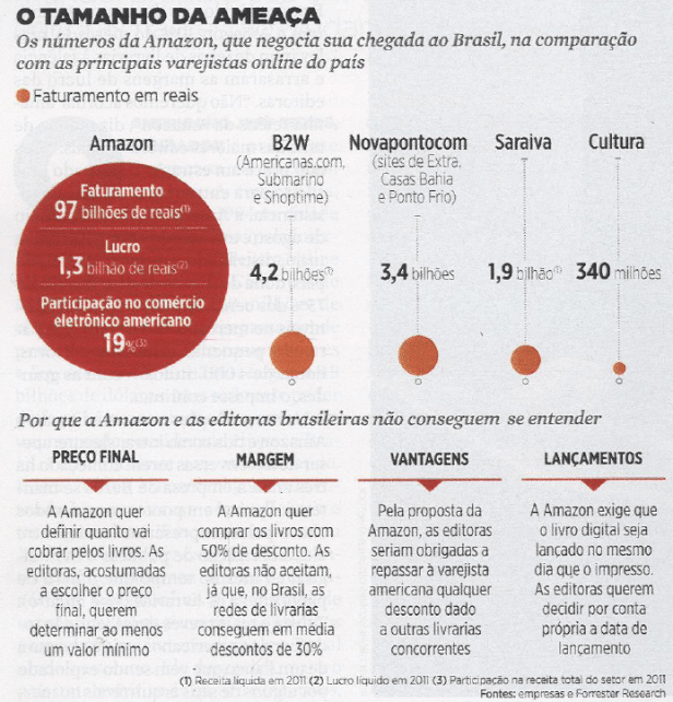A partir de 30 de julho, a Amazon deve passar a vender produtos de pequeno porte, como livros, CDs e DVDs, além de leitores digitais Kindle. Editoras ouvidas pelo Valor acreditam que os e-books chegarão antes ao mercado brasileiro, já que não precisam ser armazenados.