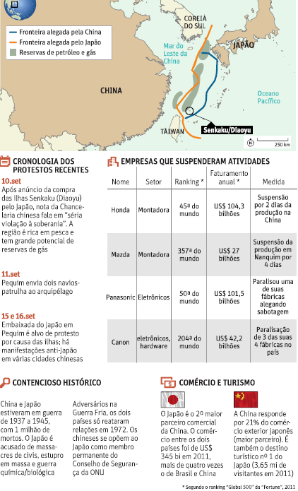 As trocas comerciais entre a China e o Japão não são coisa pouca: representaram 345 mil milhões de dólares em 2011, diz o “Wall Street Journal” (262.300 milhões de euros). O Japão é o segundo maior parceiro comercial da China, e Pequim é o principal parceiro de Tóquio: 21% das exportações e importações japonesas vão para a China, diz o jornal norte-americano.