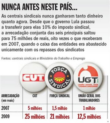 Assim como ocorre com a bagunça dos 30 partidos políticos no Brasil, segundo os dados divulgados pelo Ministério do Trabalho e Emprego, a representação das centrais sindicais é a seguinte: