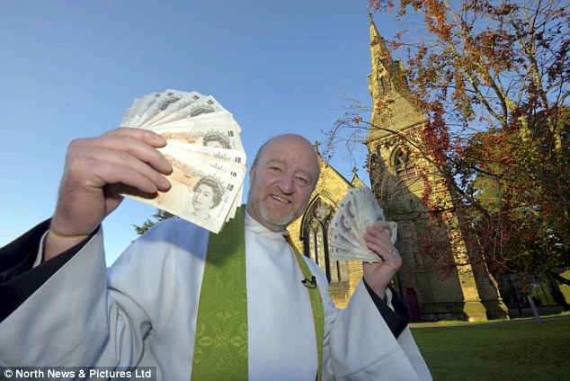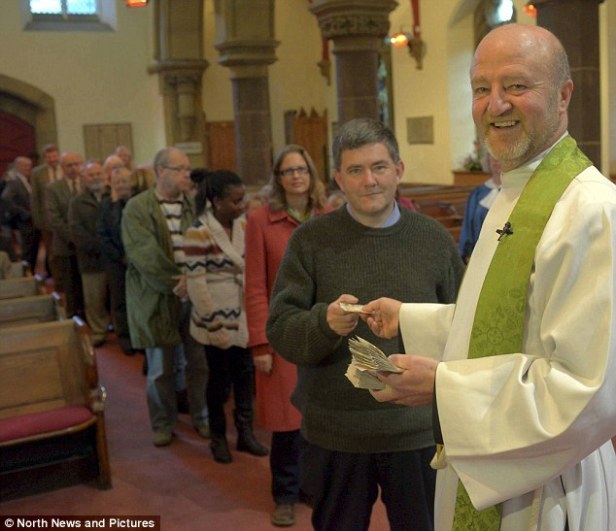 ‘Or they might take someone who is lonely for a coffee or to the cinema. I have given them lots of ideas.’ He expected to give out £1,500 in total but was keeping some money in reserve in case turn-out exceeded expectations. He said: ‘We have had a very positive reaction from the congregation. No strangers turned up. I think they thought they would have stood out like a sore thumb.