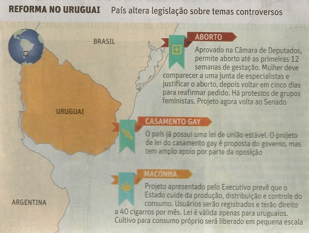 O projeto de liberação do cultivo e uso da maconha tem no presidente Mujica e em seu ministro de Defesa, Eleuterio Huidobro, ambos ex-guerrilheiros, seus maiores entusiastas. Cabe lembrar que o presidente uruguaio foi o principal defensor da entrada da Venezuela de Chávez no Mercosul. Mujica ganhou destaque por destinar 90% de seu salário para ONGs sociais. Nos anos 60, muitos brasileiros viajavam para o Uruguai para casar devido suas leis liberais quanto ao divórcio. Seu turismo é baseado na liberação de cassinos. Um caminho que pode mover a Mão de Deus contra aqueles governantes assim como aconteceu com a Argentina de Cristina Kirchner.