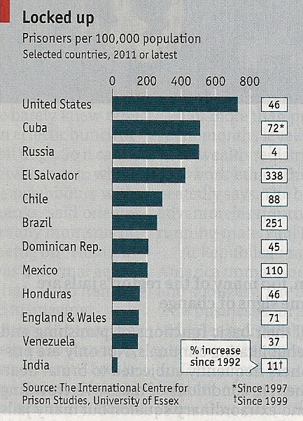 Dados do Departamento Penitenciário Nacional (Depen) revelam uma população carcerária de 514.582 presos (números referentes a dezembro de 2011 e publicados em 2012). Tamanho volume de presos deixa o Brasil em quarto lugar no ranking elaborado pelo “Centro Internacional para Estudos sobre Prisões” em parceria com a Universidade de Essex, sobre as maiores populações penitenciárias do mundo. O Brasil fica atrás apenas dos EUA, China e Rússia. Porém, o fenômeno igualmente se mostra marcante pelo constante crescimento da população carcerária brasileira nas últimas décadas, de acordo com o site Contas Abertas. O Depen mostra que, em 2000, o número de detentos era de 232.755. Em 2005, passou para 361.402 (aumento de 55% em cinco anos) e em 2010, para 496.251 presos (aumento de 37% no mesmo período).