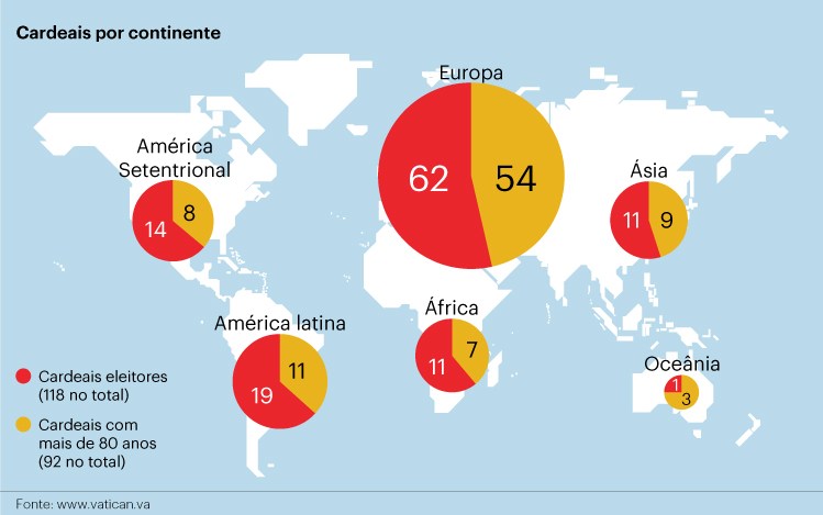 Durante o pontificado de Paulo VI, o Brasil passou de dois para oito cardeais. Hoje tem cinco. Bento XVI deixou sem cardeais as arquidioceses do Rio e de Brasília. Porto Alegre teve cardeal e está sem. Recife, a primeira sé cardinalícia brasileira, está na segunda divisão desde os anos 60, quando a ditadura hostilizava D. Helder Câmara e não queria vê-lo cardeal. Se foi econômico com os barretes brasileiros, Bento XVI foi generoso aspergindo-os pela Europa. Elevou a diocese de Valencia (800 mil habitantes), na Espanha, mas não confirmou o barrete de Porto Alegre (1,5 milhão de habitantes).