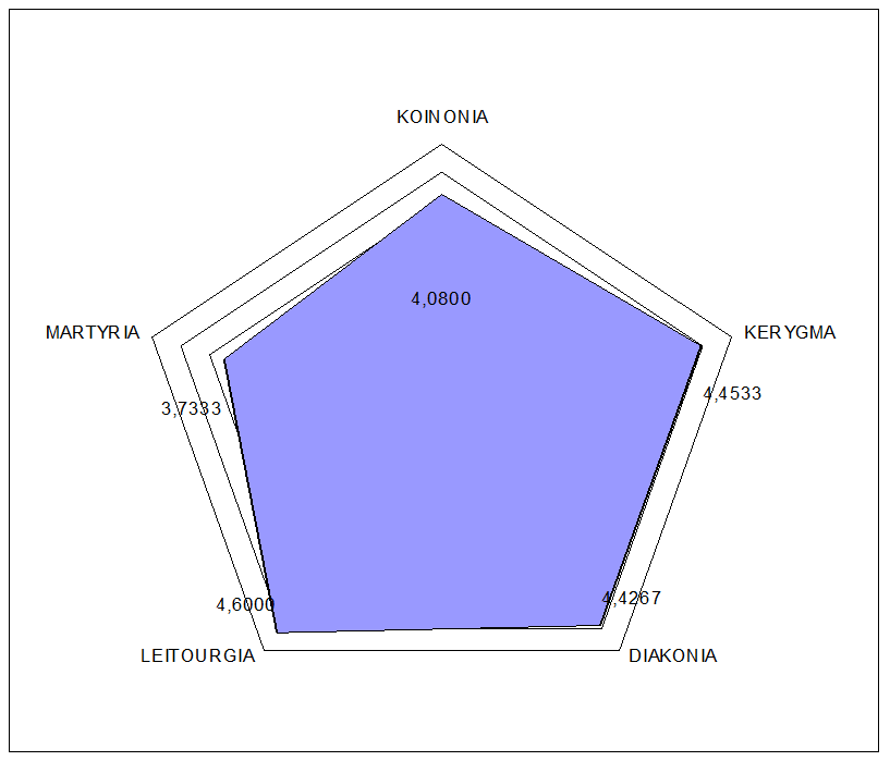 - As dimensões serviço e testemunho não foram destacadas. Tornaram-se candidatas para pontos de melhoria com ações de orientação aos dons espirituais bem como evangelismo pessoal efetivo.