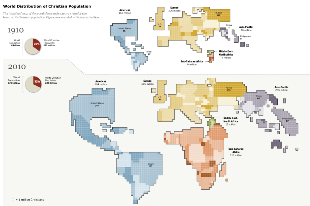 No início do séc. XX, cerca de 2/3 dos cristãos encontravam-se na Europa e Estados Unidos. Um século depois, 2/3 dos cristãos estão no Hemisfério Sul. Agora, precisamos transformar esse crescimento em geração de oportunidades, ações de pacificação e justiça social. Jesus disse: “Tudo que ligares na terra, será ligado no Céu …”.