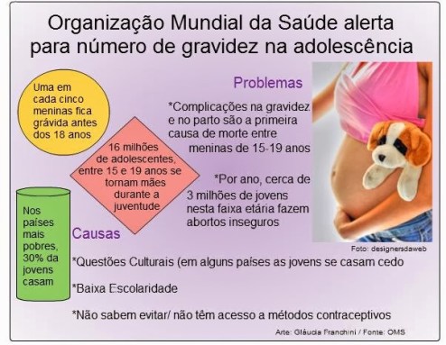 Todos os dias, 20 mil adolescentes com menos de 18 anos dão à luz em países em desenvolvimento. No Brasil, em 2010, 12% das adolescentes de 15 a 19 anos possuíam pelo menos um filho. Em 2000 cerca de 750 mil jovens foram mães no país, em 2012 o número caiu para 536 mil. Quantidade ainda preocupante, principalmente nas favelas, onde a incidência desses casos é maior.