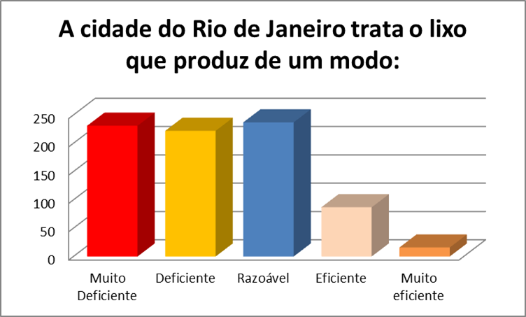 Dos 160 bairros da cidade do Rio de Janeiro, apenas 41 são atendidos semanalmente, e, mesmo assim, de forma parcial — por falta de investimentos, a coleta seletiva só ocorre em algumas ruas. Hoje, ela apresenta um desequilíbrio entre as áreas do Rio. Está mais presente nas zonas Sul (40%) e Oeste (42%) e bem menos na Norte (18%). Segundo a Comlurb, não existe coleta seletiva em favelas, o que exclui da conta um contingente de cerca de um milhão de pessoas.