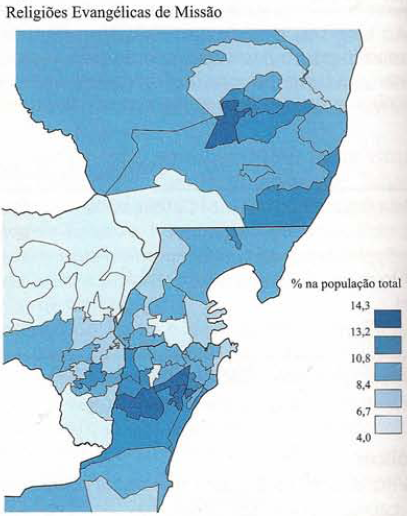 Os evangélicos de missão eram menos numerosos na capital do que naos demais municípios da região metropolitana, representando respectívamente. 5,4% e 8,2% da população total.O aumento do percentual dos evangélicos de missão foi de +1,7 pontos, entre 1991 e 2000, enquanto na periferia foi de +3 pontos, um dos crescimentos mais elevados dentre as capitais brasileiras. Entre os evangélicos tradicionais havia um predomínio dos batistas, com 4,5% da população, seguidos de longe pelos adventistas e pelos congregacionais, cada um deles com 0,4%.