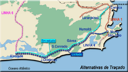 O traçado anterior da Linha 4, licitado em 1998, também incluía São Conrado e Gávea, mas passava por Humaitá e Botafogo. O projeto, porém, não foi adiante até a candidatura do Rio à sede olímpica ganhar força. Na época, novos estudos concluíram que levar o metrô a Ipanema e Leblon, em vez de a Botafogo e Humaitá, significaria atender 240 mil usuários por dia, quase o dobro do previsto no plano original.