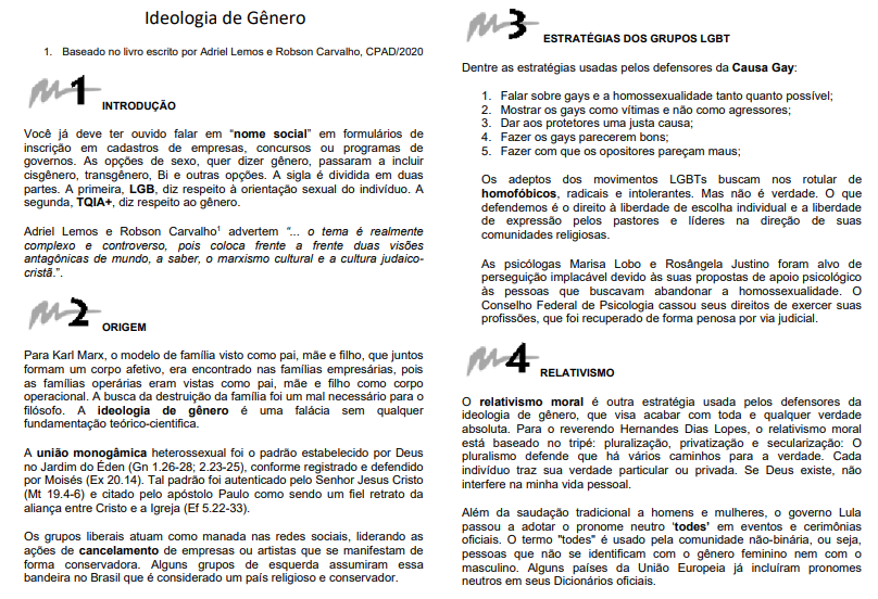 Esse estudo foi ministrado na EBCA e pode ser baixado ao clicar aqui: Ideologia de gênero, introdução.