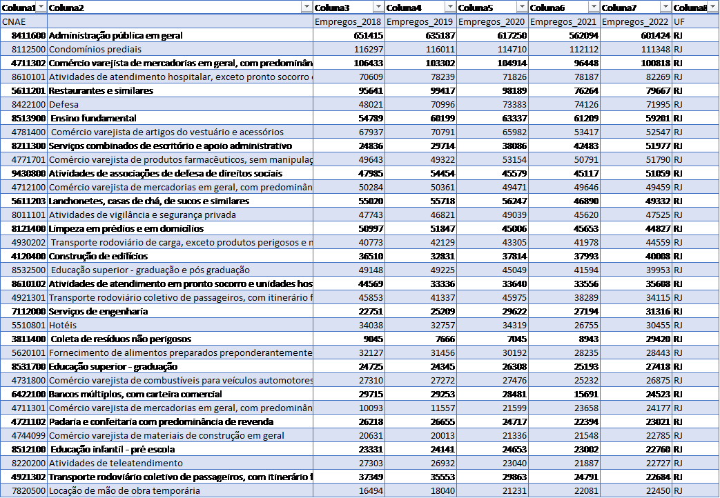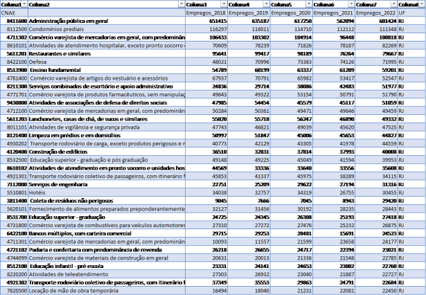 Tabela A1: Empregos por CNAEs, estado do Rio de Janeiro, 2018 a 2022