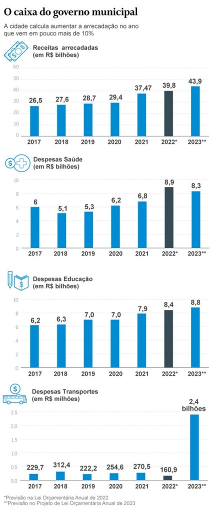 Transportes R$ 1,45 bilhões (gastos de R$ 1,5 bilhão na nova CTC em 2023)